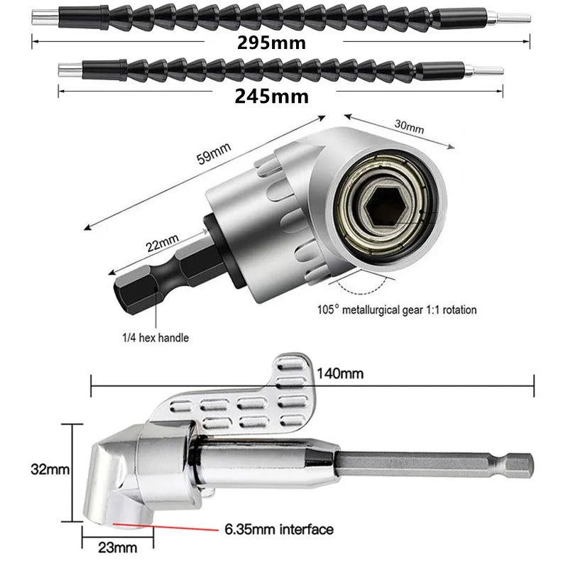 Dê um upgrade nas suas ferramentas com o Adaptador Angular 105°. Ideal para alcançar cantos difíceis e apertados, ele transforma sua parafusadeira ou chave de fenda em uma máquina versátil, prática e eficiente. Essencial para quem trabalha com bricolagem, elétrica ou manutenção em geral.