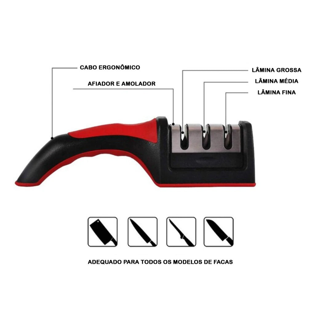 Afiador de Facas Profissional 3 em 1