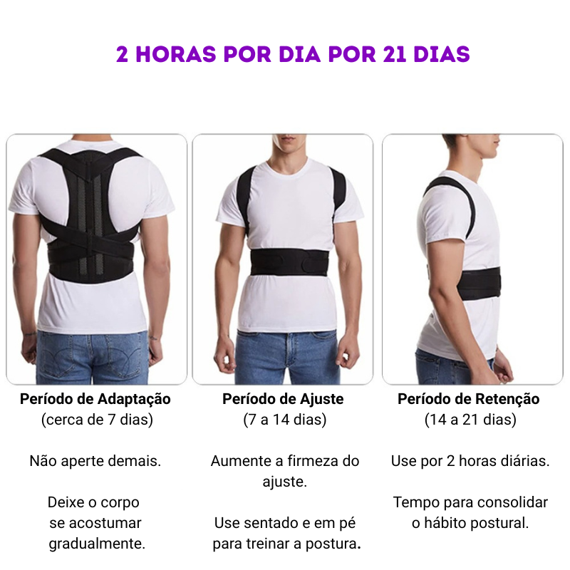 Vista o corretor como uma mochila, posicionando bem na parte superior das costas.